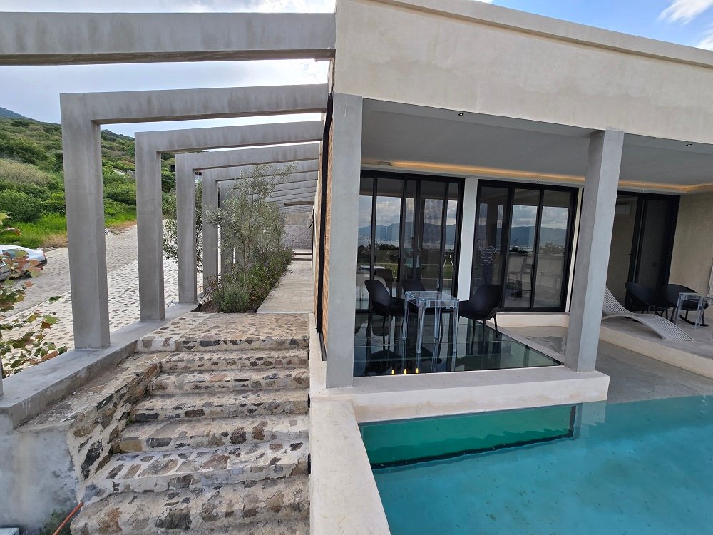 Relax and soak up the sun on the expansive terrace, or take a dip in the heated pool to enjoy it year-round. The wet lounge chair area invites you to experience unique moments of relaxation. For wine enthusiasts, the glass-roofed wine cellar that seamlessly integrates with the terrace and pool is a sophisticated touch.